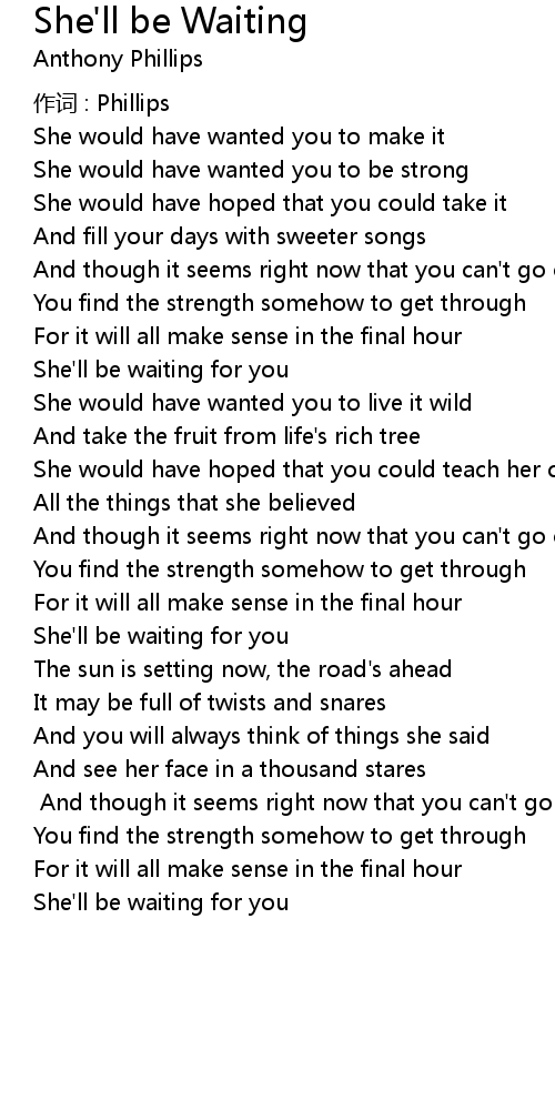 | 歌曲 | She'll be Waiting |