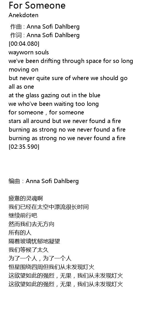 | [00:04.080] | 编曲:Anna Sofi Dahlberg |