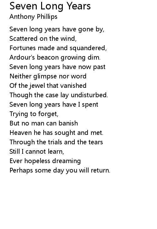 | Seven long years have gone by, | |