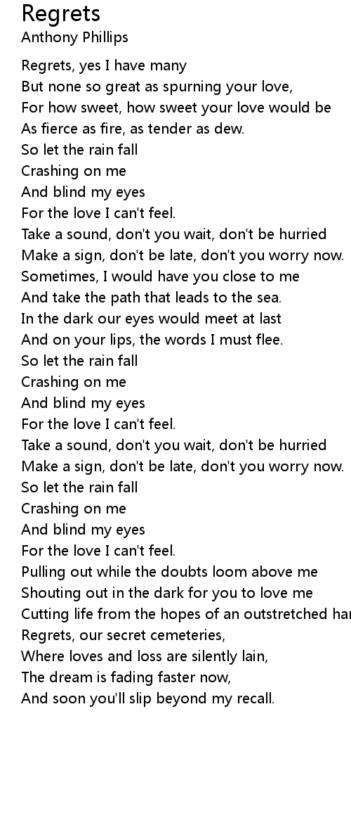 Regrets, yes I have many |