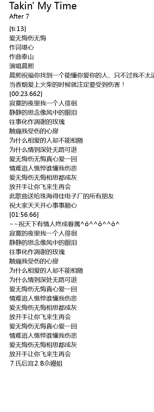 | [03:18.109] | 爱无悔伤无悔真心爱一回 |