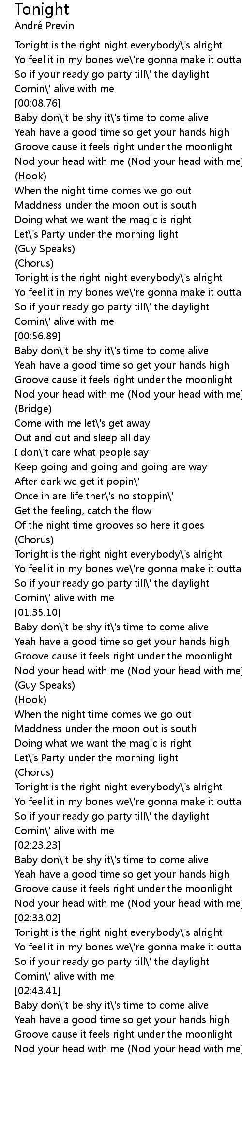 [00:00.34] Tonight is the right night everybody\'s alright