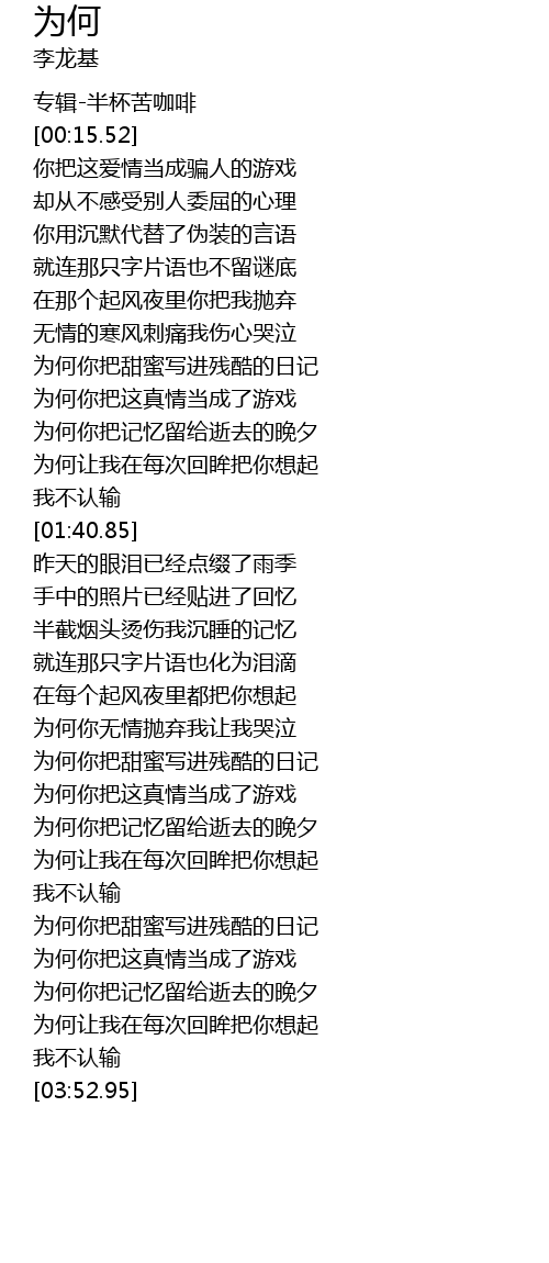 | [03:31.41] | 为何你把这真情当成了游戏 |