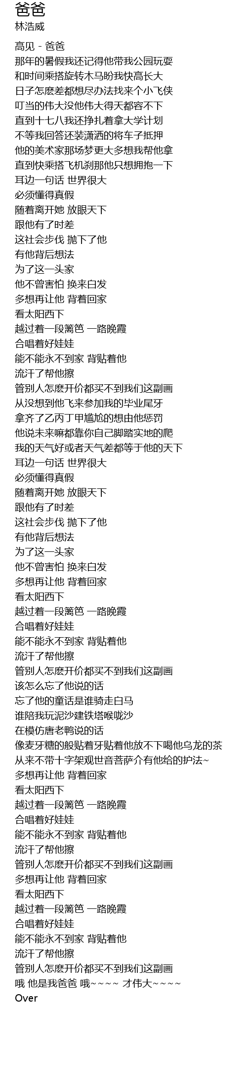 | [05:24.08] | 哦 他是我爸爸 哦~~~~ 才伟大~~~~ |