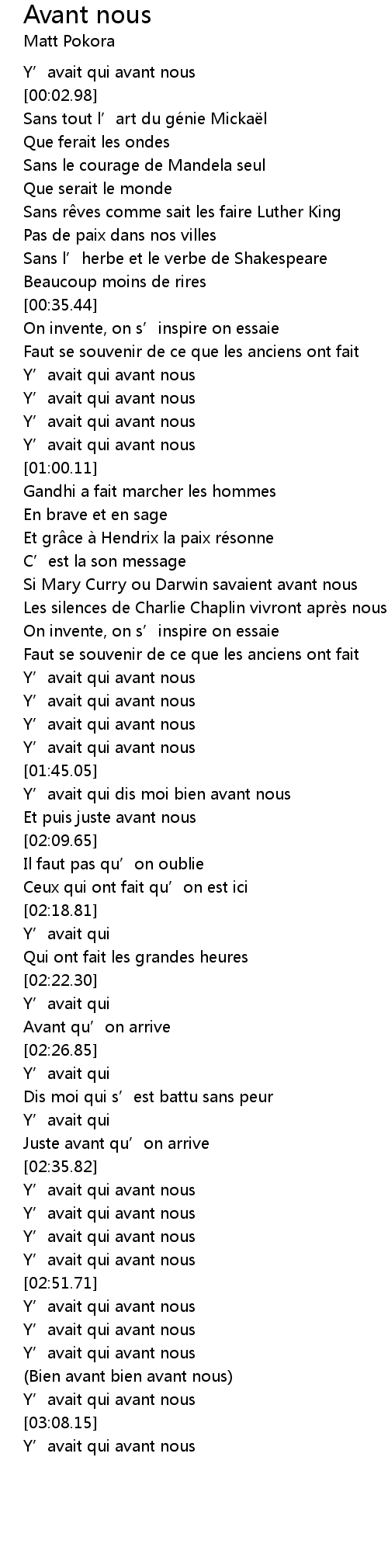 | [02:04.16] | Y' avait qui dis moi bien avant nous |