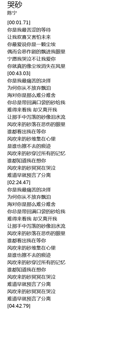 | [03:24.75] | 让那手中泻落的砂像泪水流 |