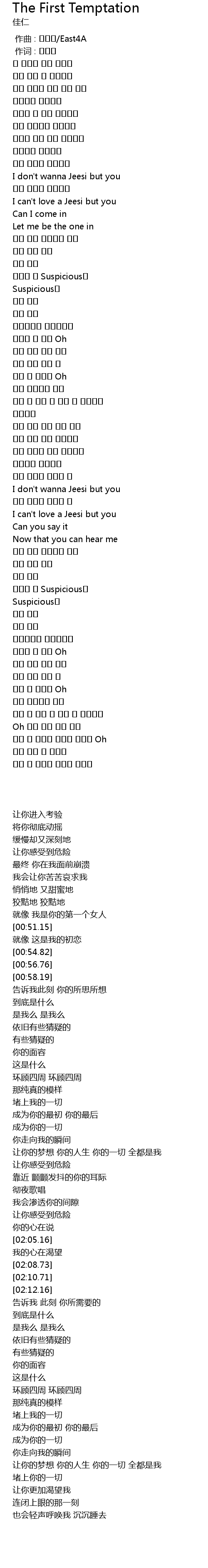| [00:51.15] | I don' t wanna Jeesi but you |