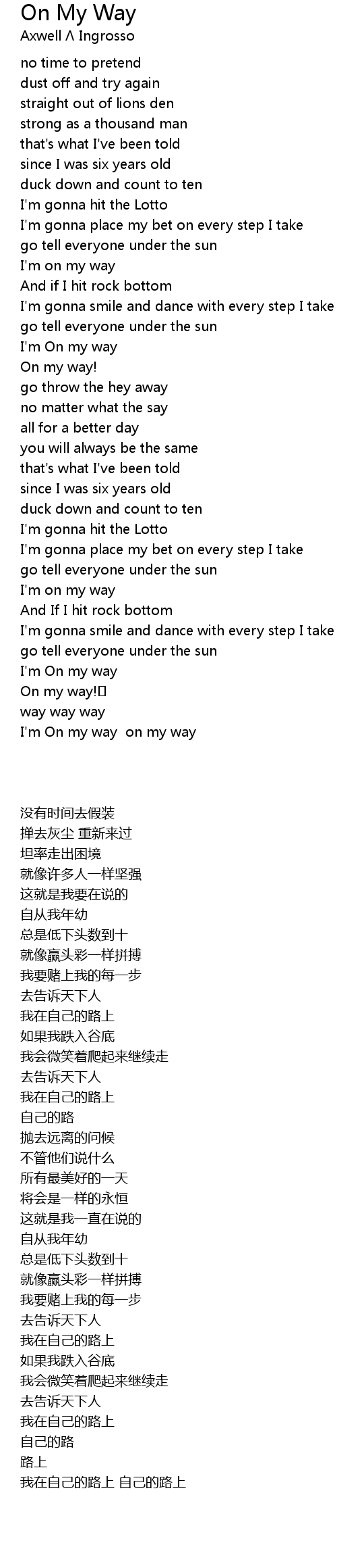 | [03:45.140] | I' m On my way on my way |