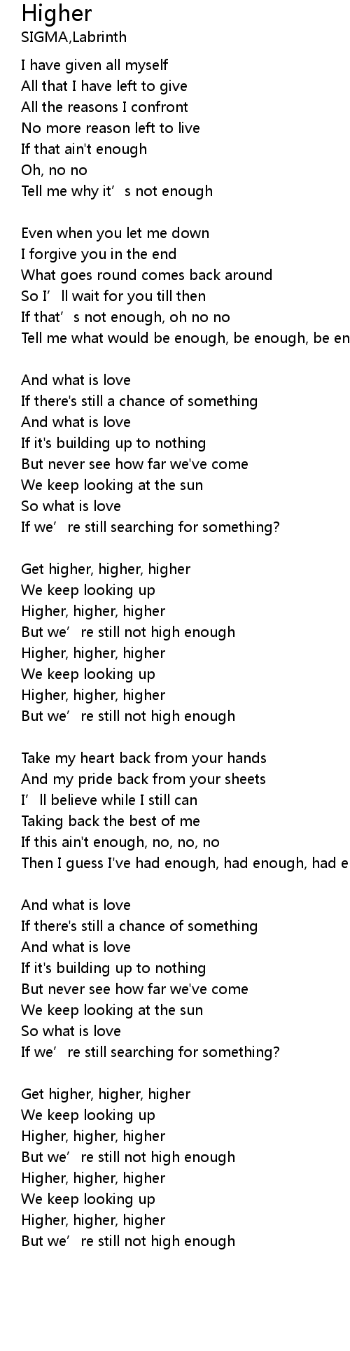 | Higher, higher, higher | |