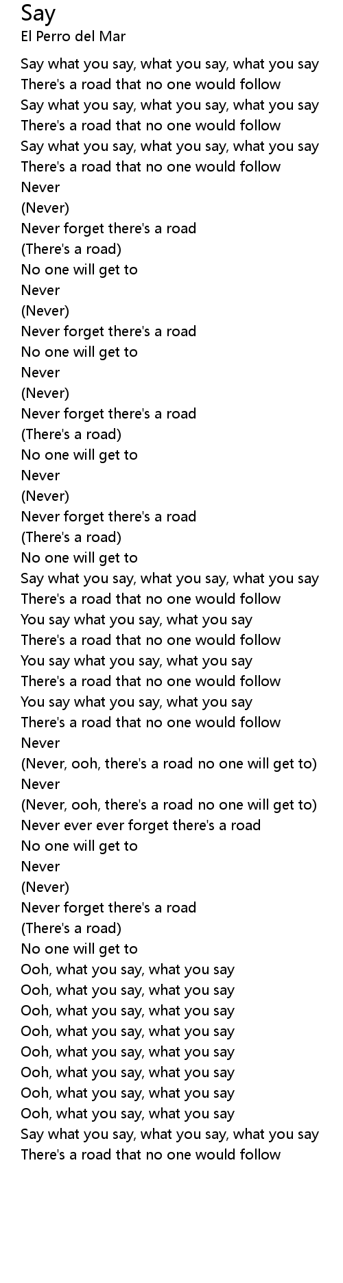 Never ever ever forget there's a road |