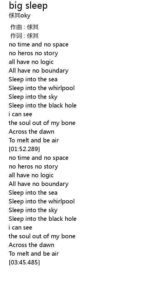 | [03:04.514] | Sleep into the black hole |