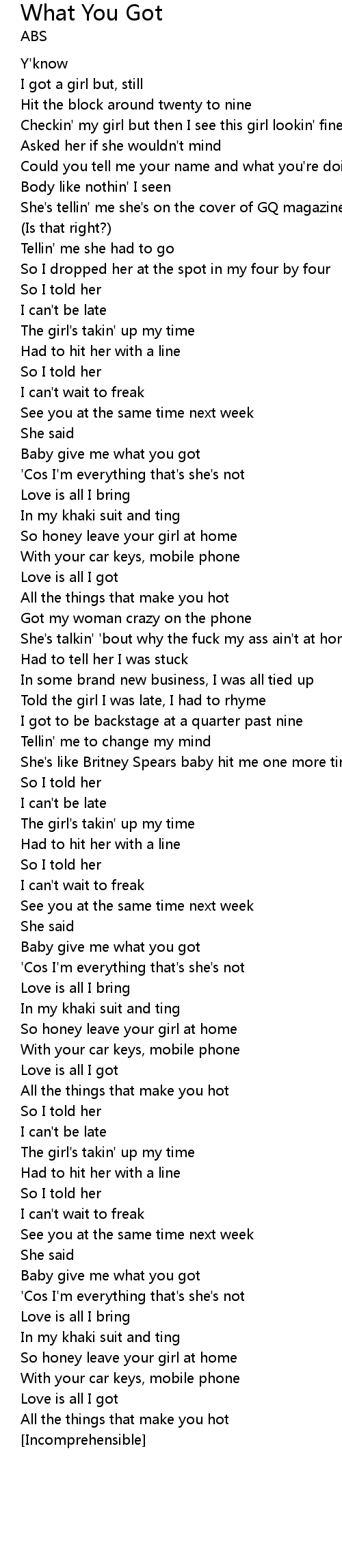 Baby give me what you got |