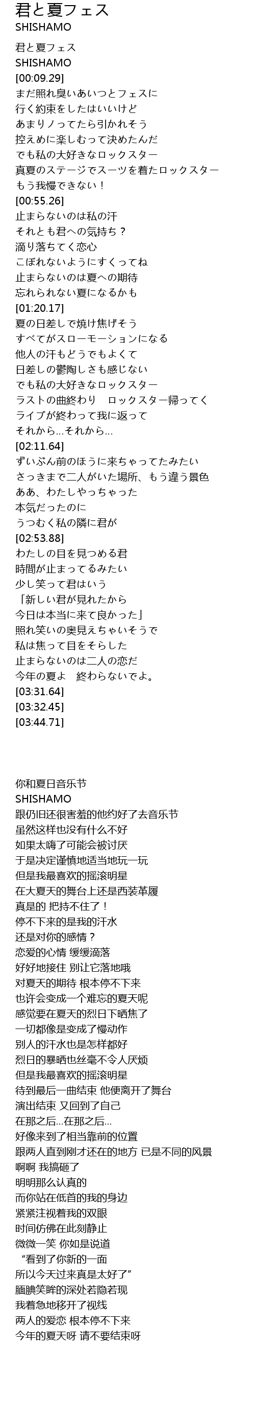 | [00:00.00] | 君と夏フェス |