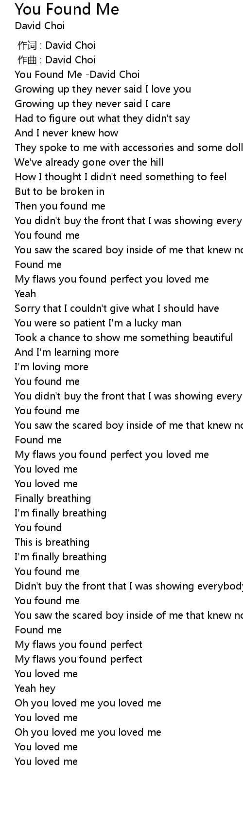 | [00:00.00] | You Found Me David Choi |