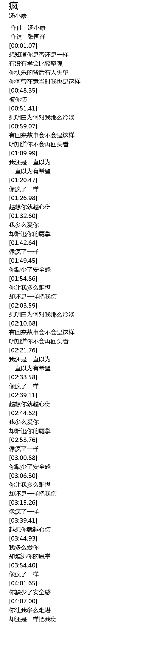 | [00:00.00] | 作曲 : 汤小康 |