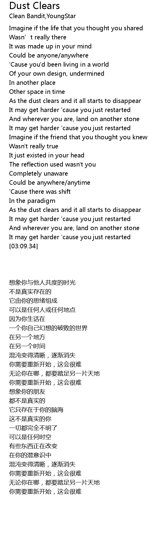 | [02:35.40] | As the dust clears and it all starts to disappear |