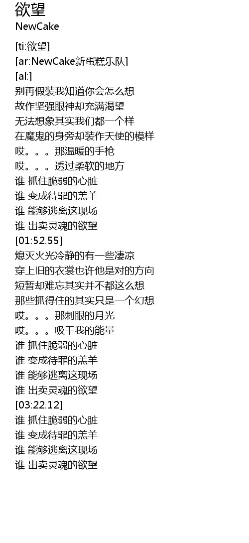 | [04:00.34] | 谁 出卖灵魂的欲望 |