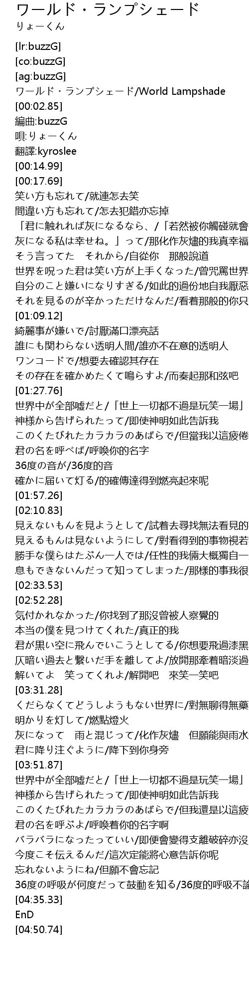 | [00:01.08] | ワールド・ランプシェード/World Lampshade |