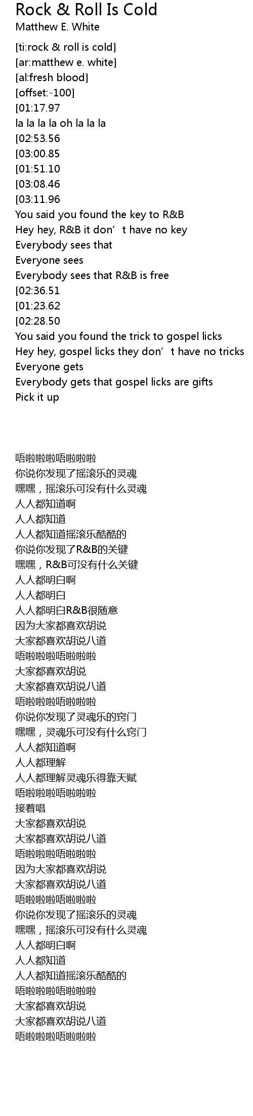 | [00:42.02][03:11.96] | Everyone knows that rock and roll is cold |