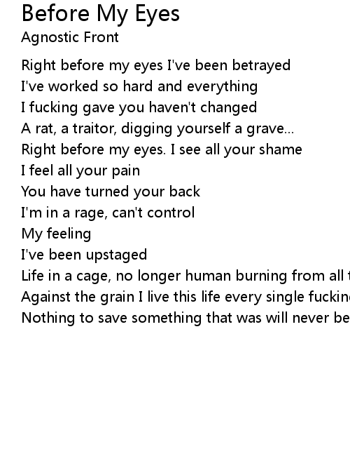 | Right before my eyes I've been betrayed | |