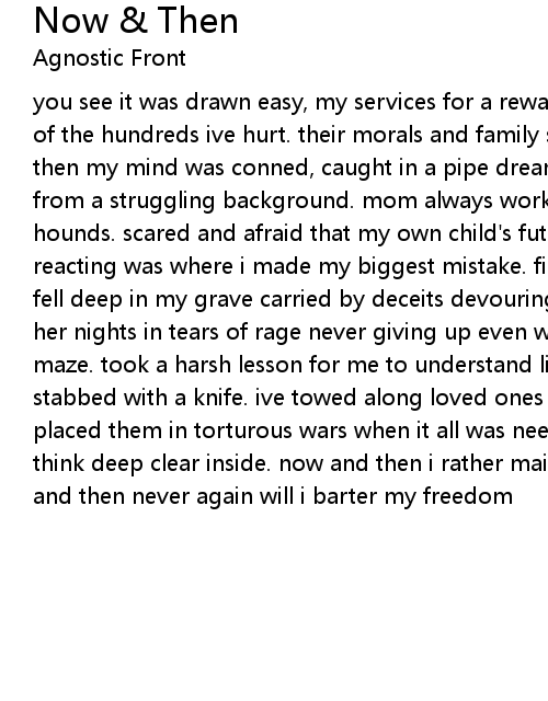 you see it was drawn easy, my services for a rewarding fee. never thinking then of the hundreds ive hurt. their morals and family so deserted, you see, back then my mind was conned, caught in a pipe dream. understand my path set forth from a struggling background. mom always worked her hardest maintaining her four hounds. scared and afraid that my own child's future was at stake quickly reacting was where i made my biggest mistake. filled with dillusions i fell, i fell deep in my grave carried by deceits devouring waves. i can still remember her nights in tears of rage never giving up even with her life in a ruthless maze. took a harsh lesson for me to understand life. what once was taken granted stabbed with a knife. ive towed along loved ones throughout my experiences, placed them in torturous wars when it all was needless. now and then i failed to think deep clear inside. now and then i rather maintain a modest existence. now and then never again will i barter my freedom