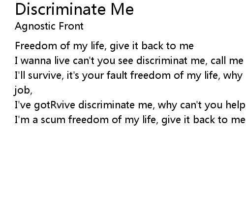 | I've gotRvive discriminate me, why can't you help? everybody thinks | |