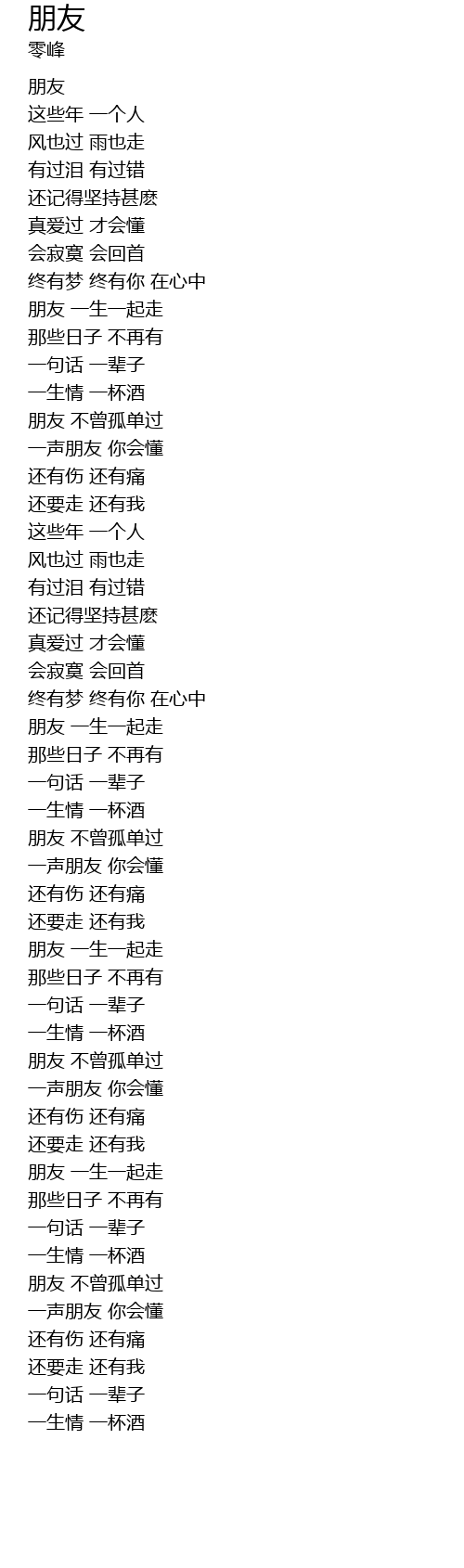 | [03:36.00] | péng yǒu yī shēng yì qǐ zǒu |
