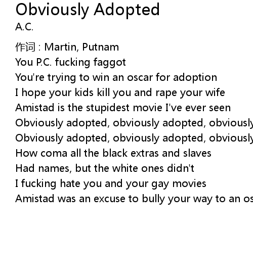 | Obviously adopted, obviously adopted, obviously adopted, fuck you Spielberg | |