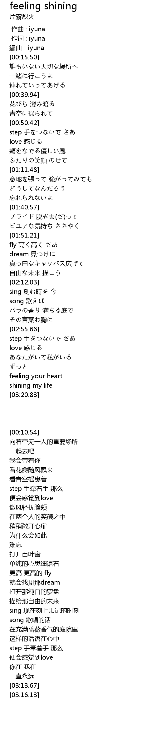 | [00:10.54] | 編曲:iyuna |