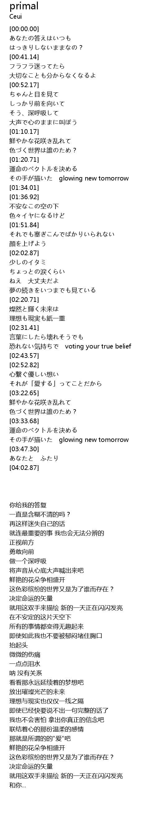 | [03:39.84] | その手が描いた glowing new tomorrow |