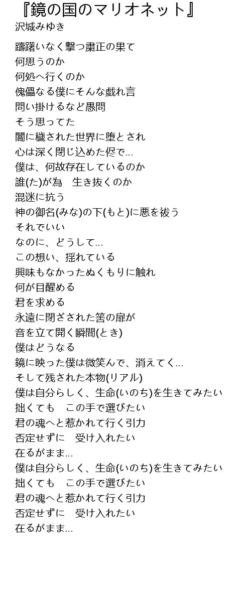 | 歌曲 | 『鏡の国のマリオネット』 |