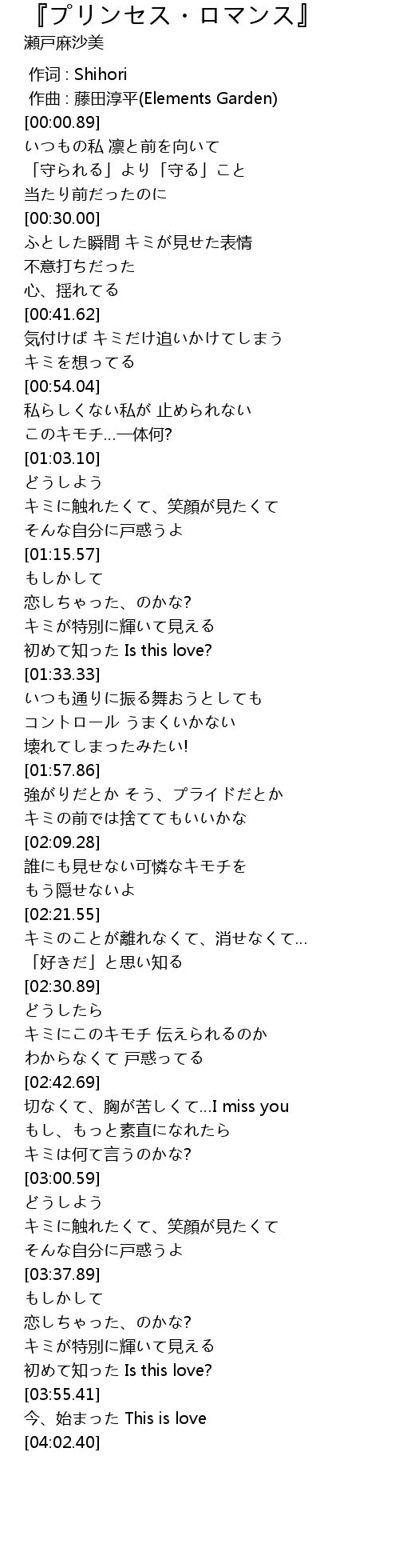 | [03:56.64] | 今、始まった This is love |