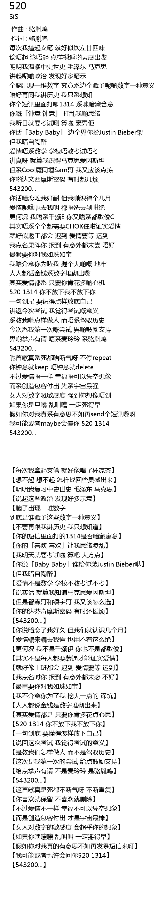 | [02:47.80] | 【我可能或者也许会回你520 1314】 |