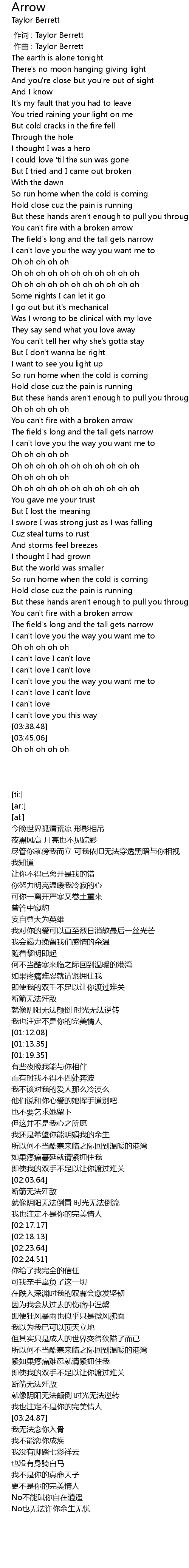 | [00:00.000] | 作词 : Taylor Berrett |