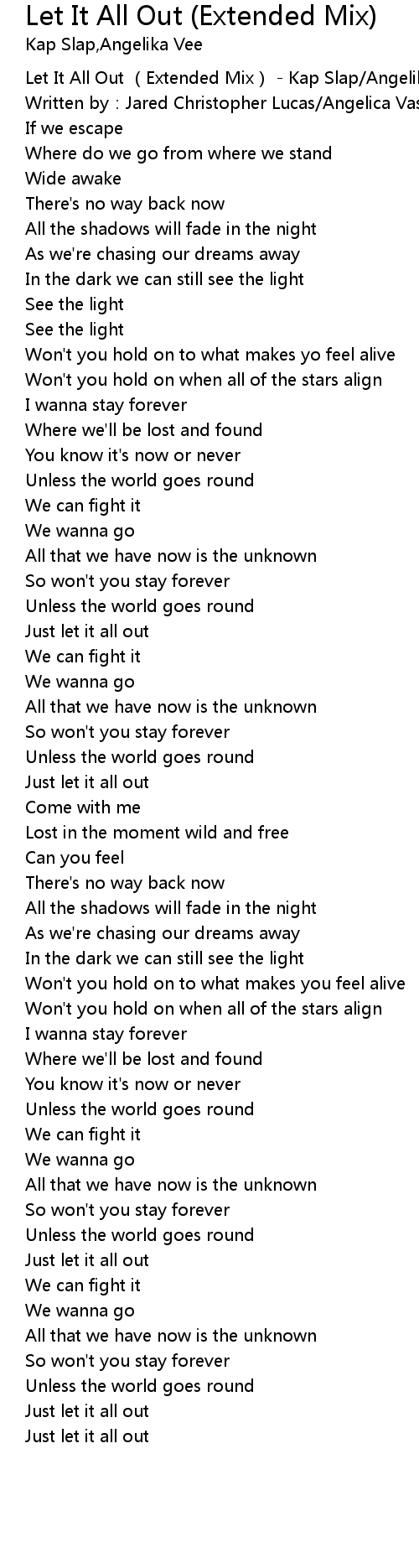| [00:01.00] | Let It All Out Extended Mix Kap Slap Angelika Vee |