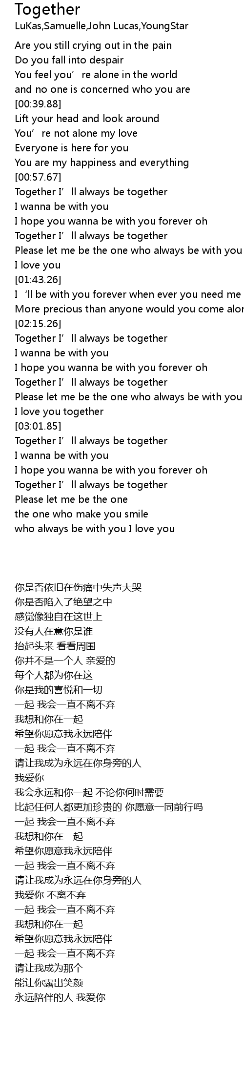 | [03:01.85] | Together I' ll always be together |