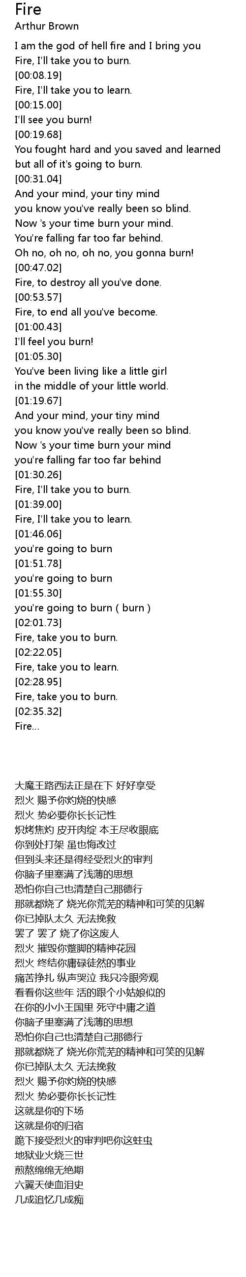 | [02:18.49] | Fire, take you to burn. |