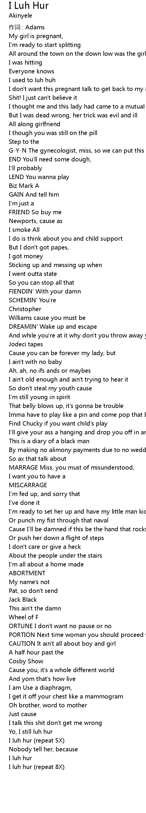 | I luh hur (repeat 8X) |