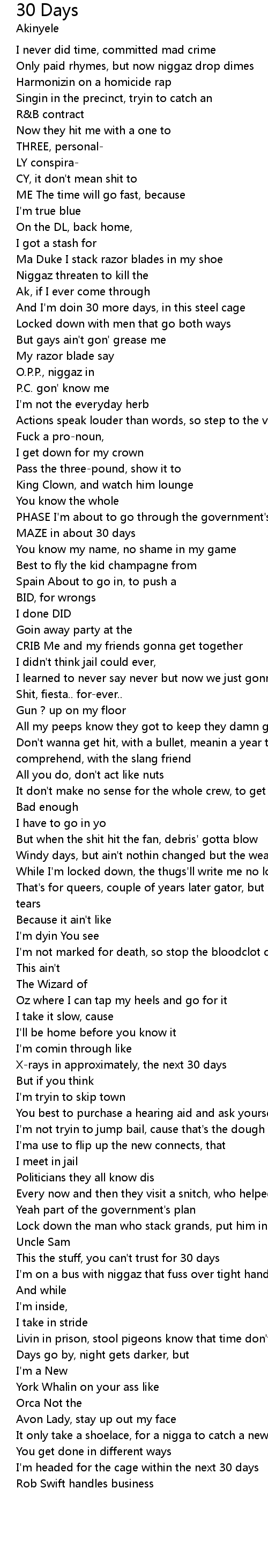And I'm doin 30 more days, in this steel cage |