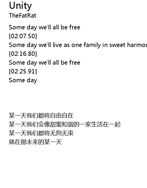 | [02:08.20] | Some day we'll live as one family in sweet harmony |
