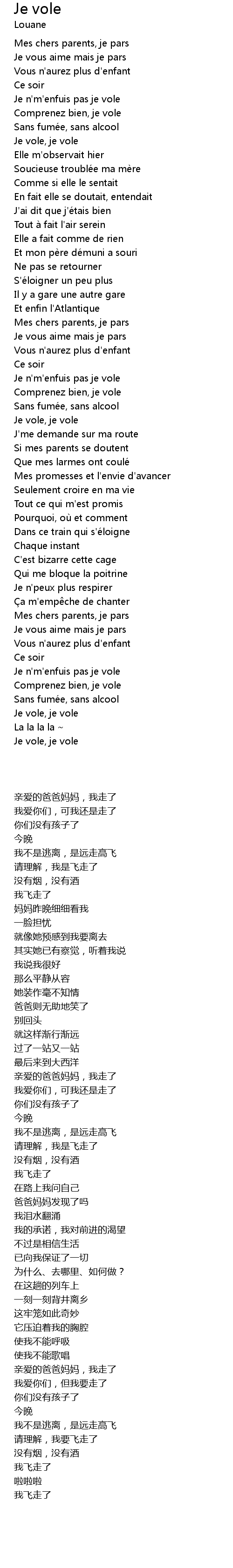 | [01:33.64] | Je n'm'enfuis pas je vole |