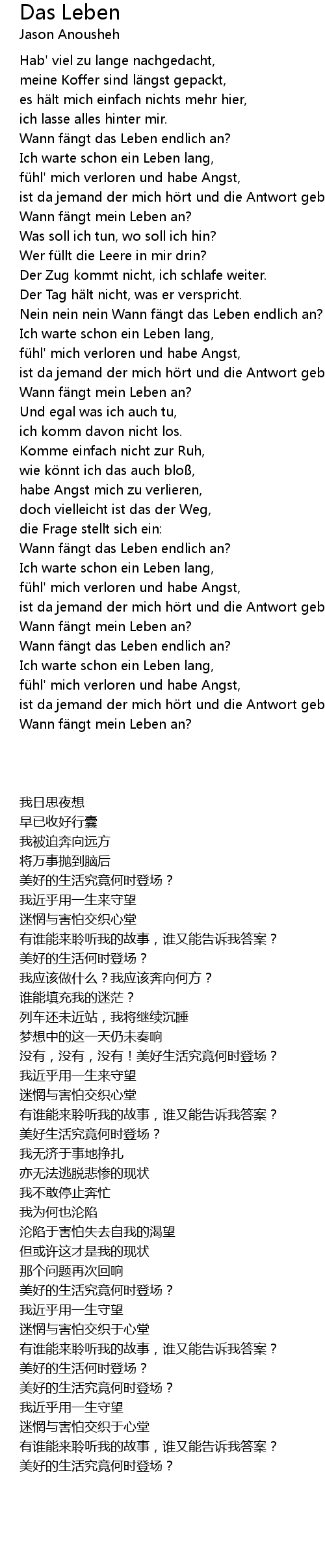 | [00:32.309] | Wann fängt das Leben endlich an? |
