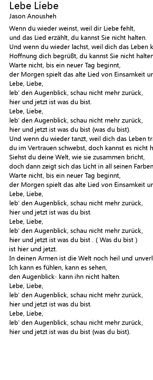 | [00:17:500] | Wenn du wieder weinst, weil dir Liebe fehlt, |