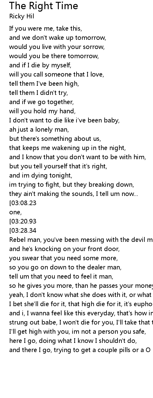 | [01:26.94][03:08.23] | it might not be the right time, I might not be the right one, |