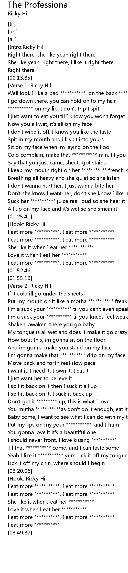 | [01:42.16] | Love it when I eat her *********** |