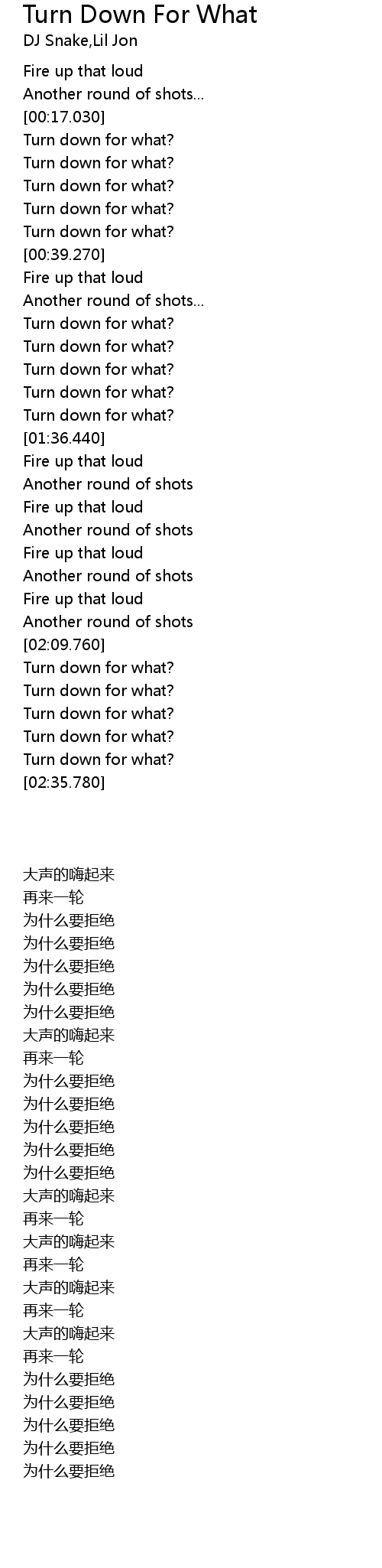 | [02:33.150] | Turn down for what? |