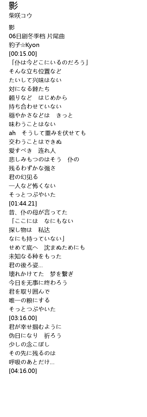 | [00:09.00] | 06日剧冬季档 片尾曲 |