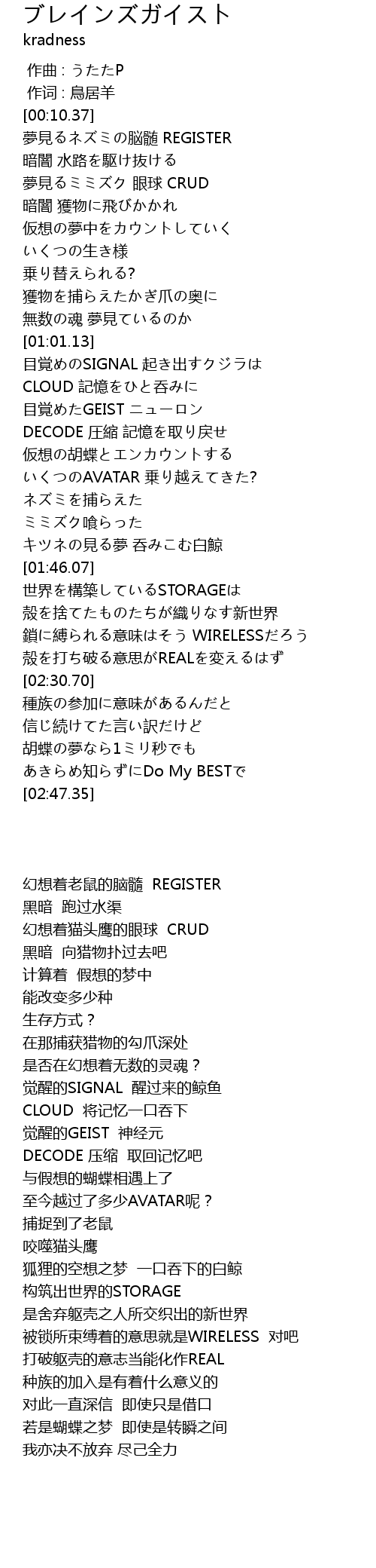 | [00:30.66] | 夢見るネズミの脳髄 REGISTER |