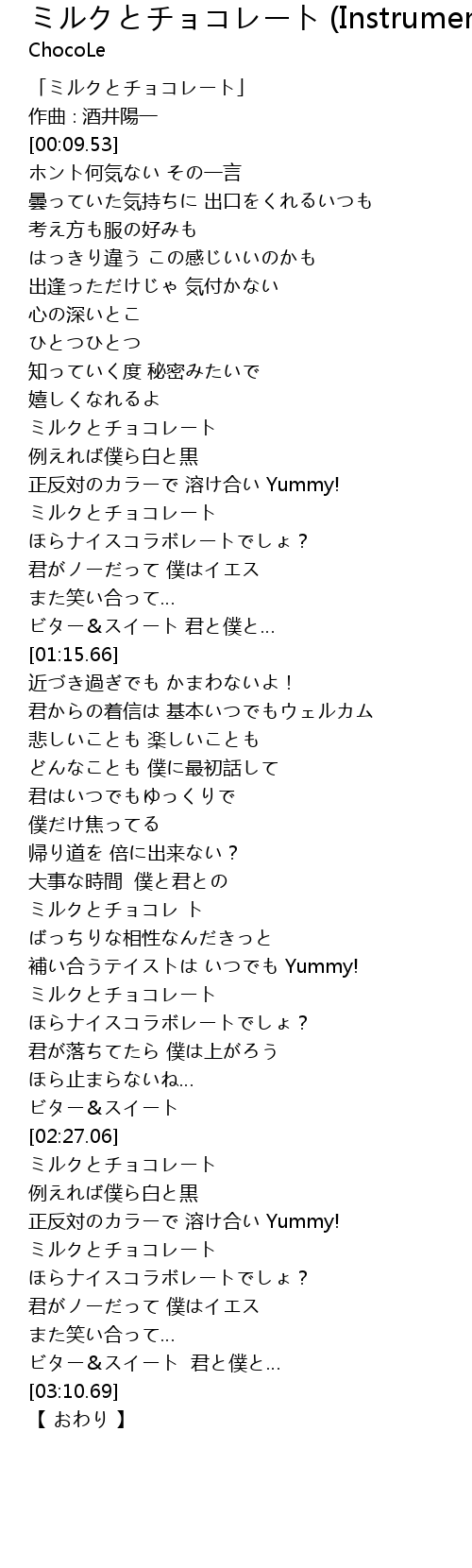 | [00:01.53] | 「ミルクとチョコレート」 |
