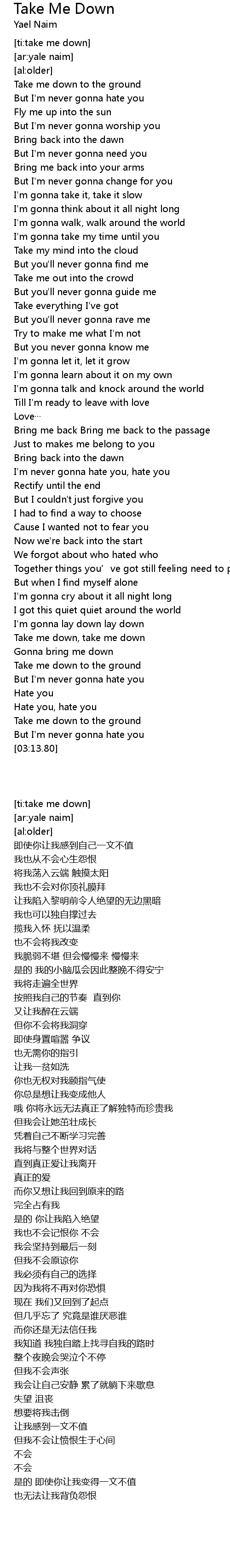 | [01:52.79] | I' m never gonna hate you, hate you |